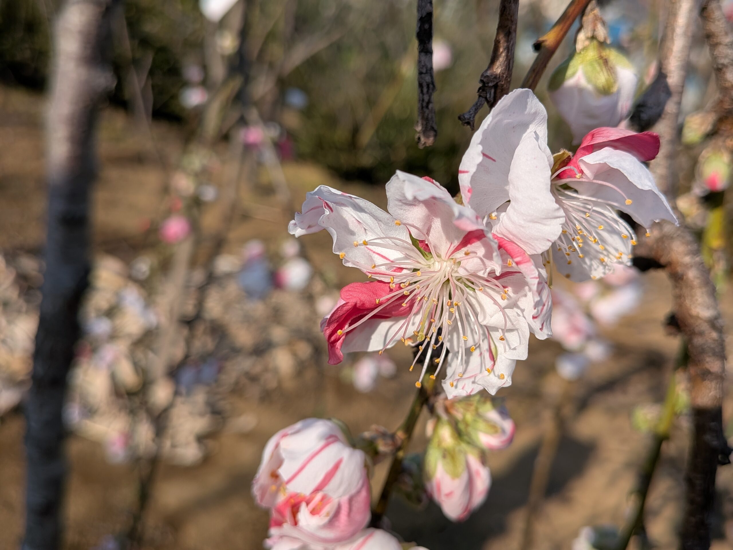 学名の persica は「ペルシャの」という意味を持ちますが、原産は中国です。日本でも古くから愛されており、特に「咲き分け」の特性を持つ本種は、個体や年によって色の出方が異なるため、毎年新しい表情を見せてくれるのが最大の魅力です。