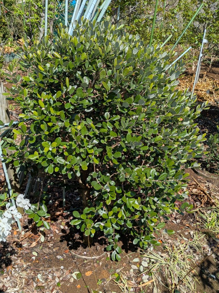 1.3mの高さにギュッと魅力が詰まっているため、限られたスペースでも十分にフェイジョアの恩恵(初夏の花、秋の果実、常緑の美しい葉)を楽しむことができます。