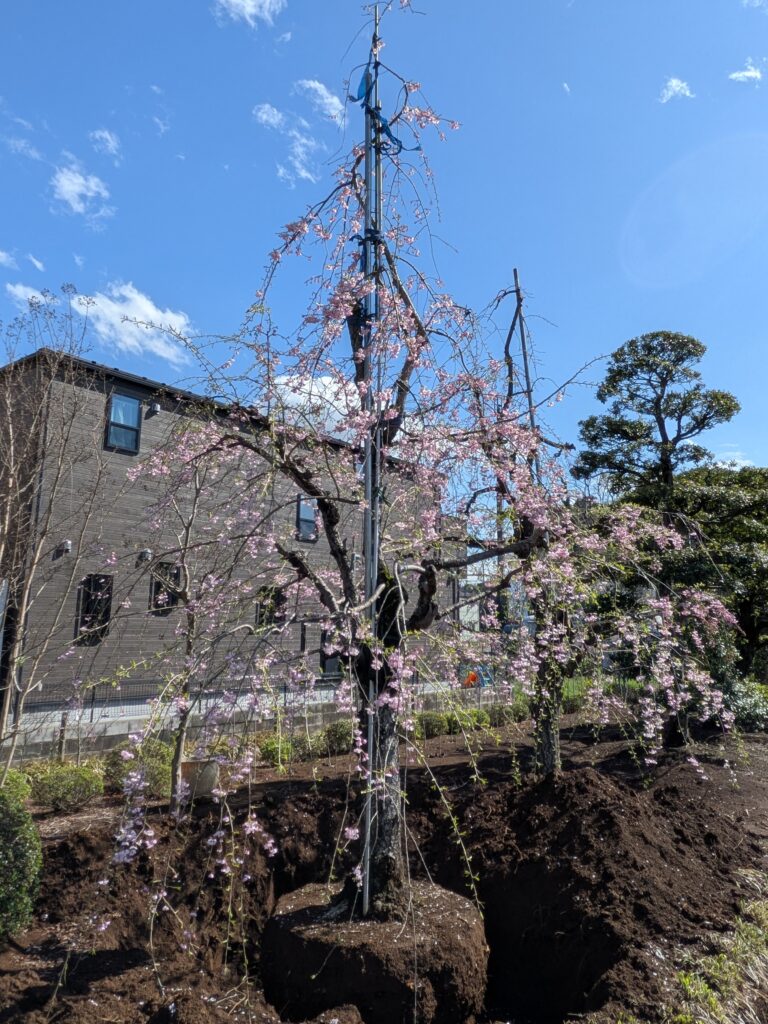 | 剪定の時期 | 落葉期の12月〜2月頃に行います。枝垂れ桜特有のしなやかなラインを活かしつつ、枯れ枝や重なり合った枝を整理して風通しを良くします。 |